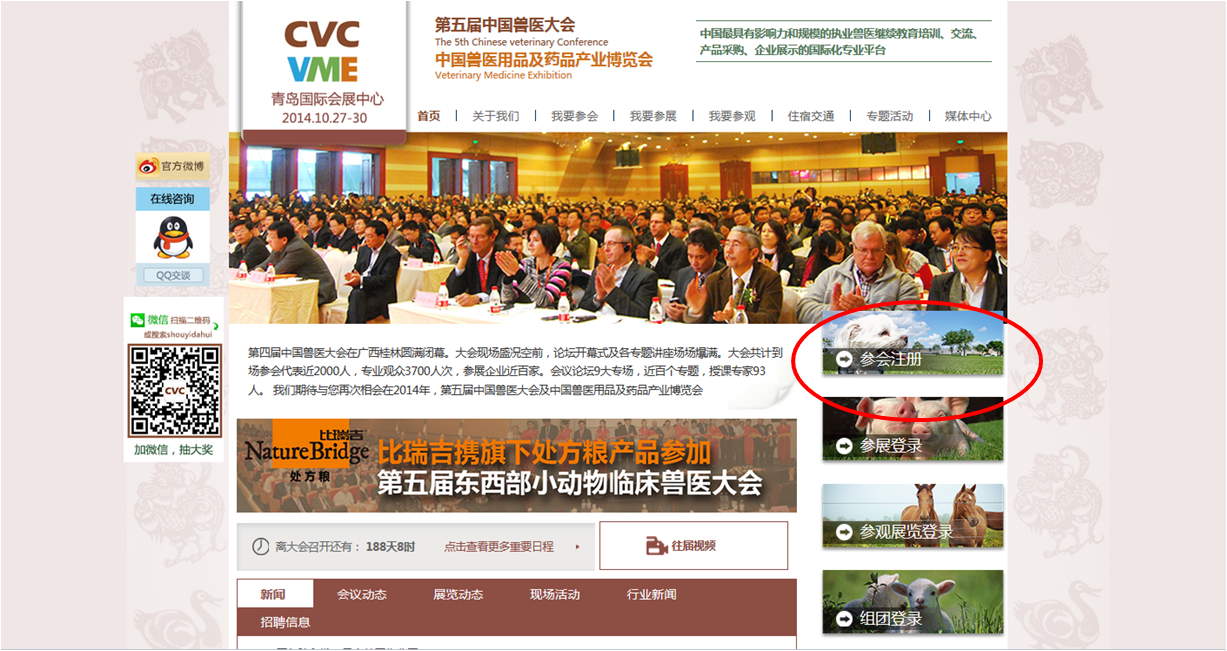 1.打开中国兽医大会网站首页:www.cnvc.org.cn