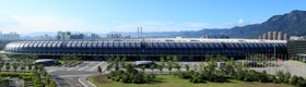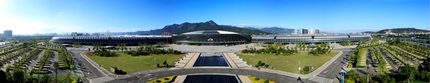 这个会展中心是福州甚至中国东南沿海目前最高水准的会议展览中心。海峡国际会展中心总体布局呈“V”字形,由中轴线上会议中心连接左右两个展馆组成,总建筑 鼓山上眺望海峡会展中心面积约38万平方米,会议中心和净展面积各约8万平方米,以净展面积论,在全国大中型城市中排第1位。